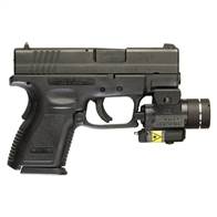 Lightweight rail-mounted light with red laser, constructed of an impact-resistant polymer, designed to fit compact and sub-compact handguns. It also fits most full-sized handguns with rails on the market. Now shining brighter at 170 lumens!