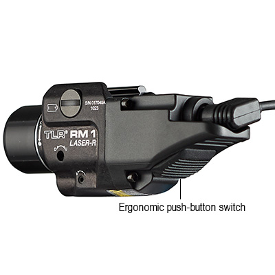 The low-profile TLR® RM 1 Laser features an HPL face cap for a longer reaching, tighter beam. It’s designed to produce more candela while maintaining lumen output. Independently operating push-button and remote pressure switches provide the security of knowing you'll always have light.
